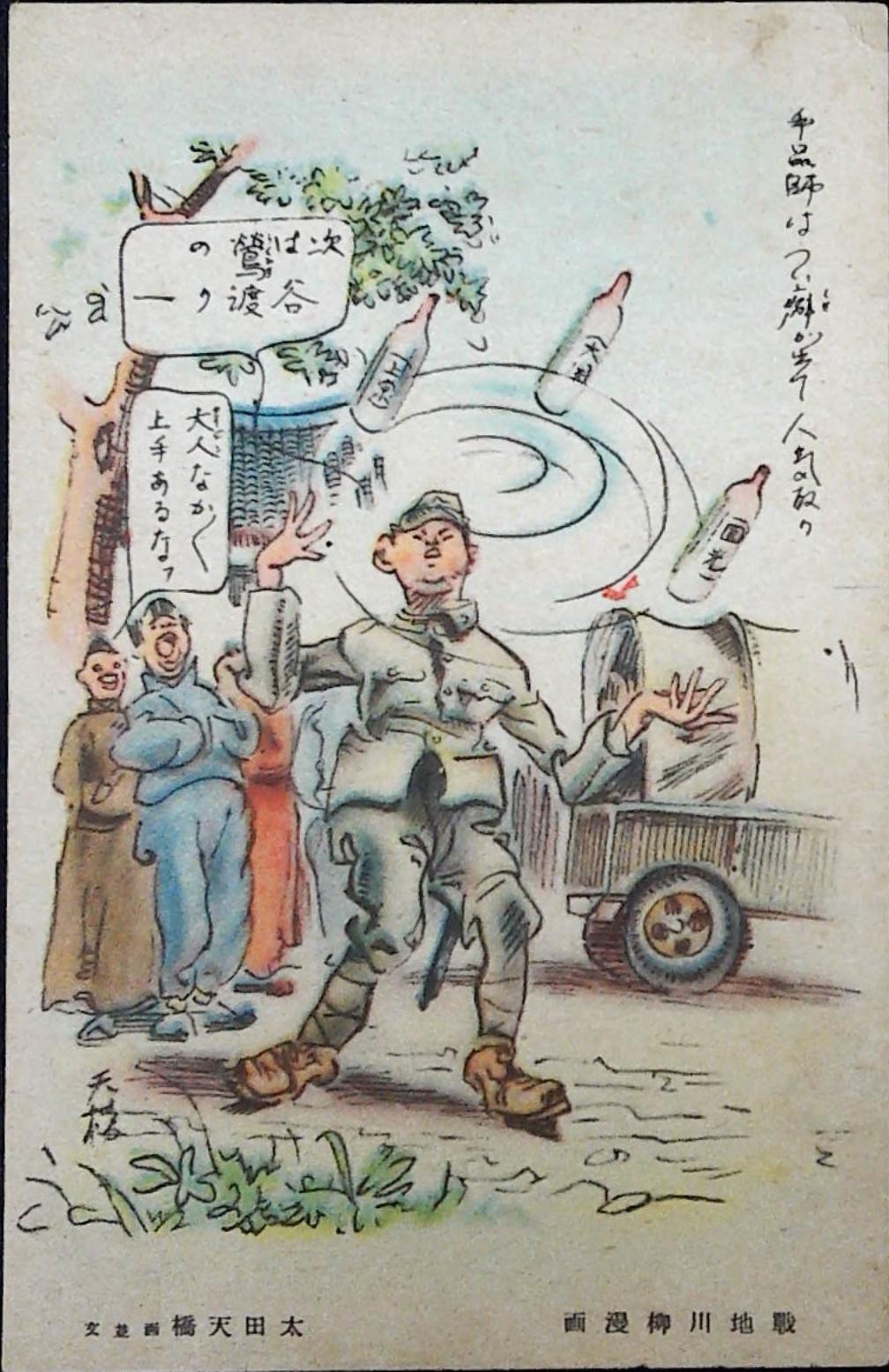 戦地川柳漫画 太田天橋 絵葉書 手品師は 絵葉書