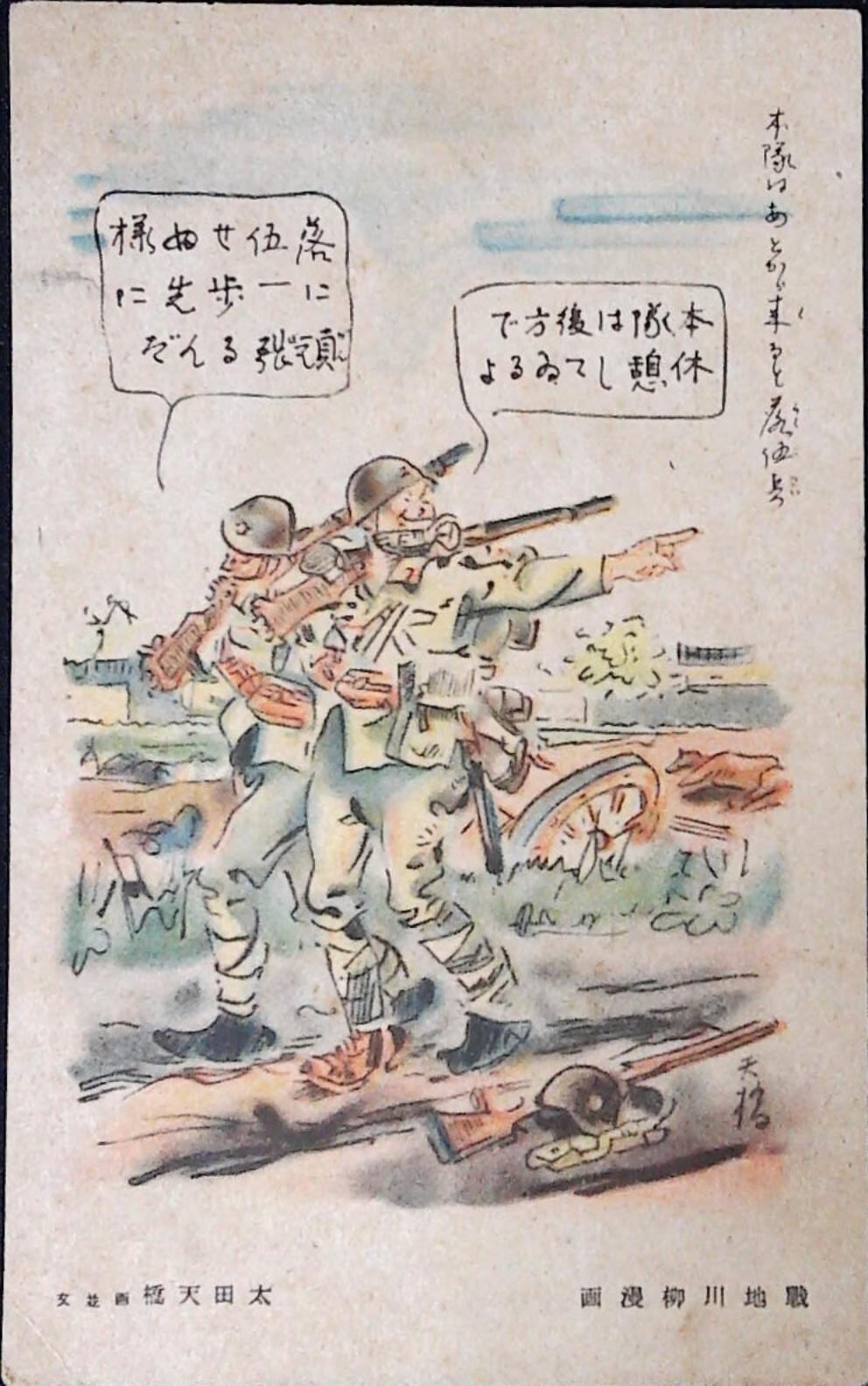 戦地川柳漫画 太田天橋 絵葉書 本隊はあとから 絵葉書
