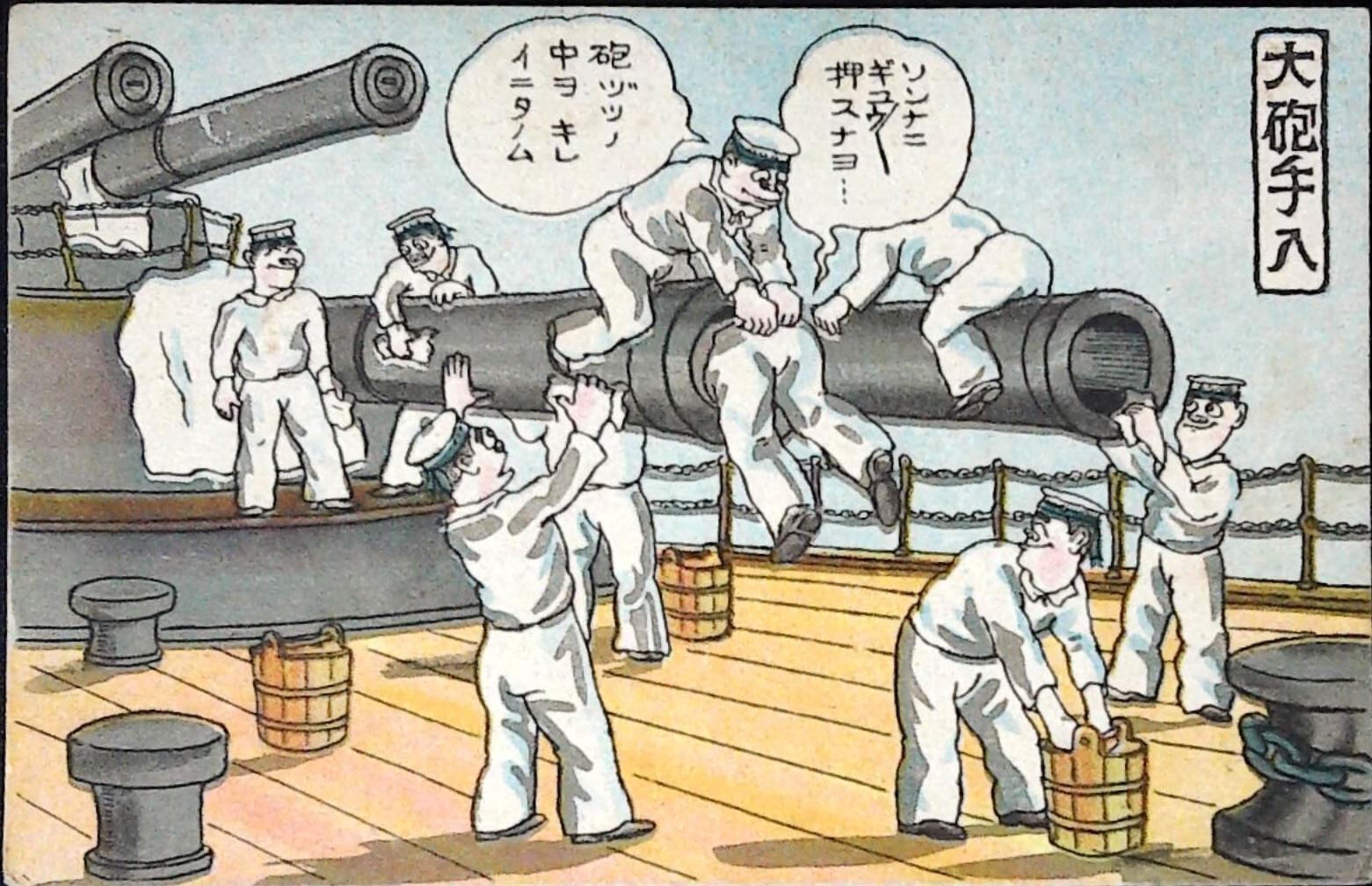戦前 海軍 漫画 絵葉書 大砲手入 絵葉書