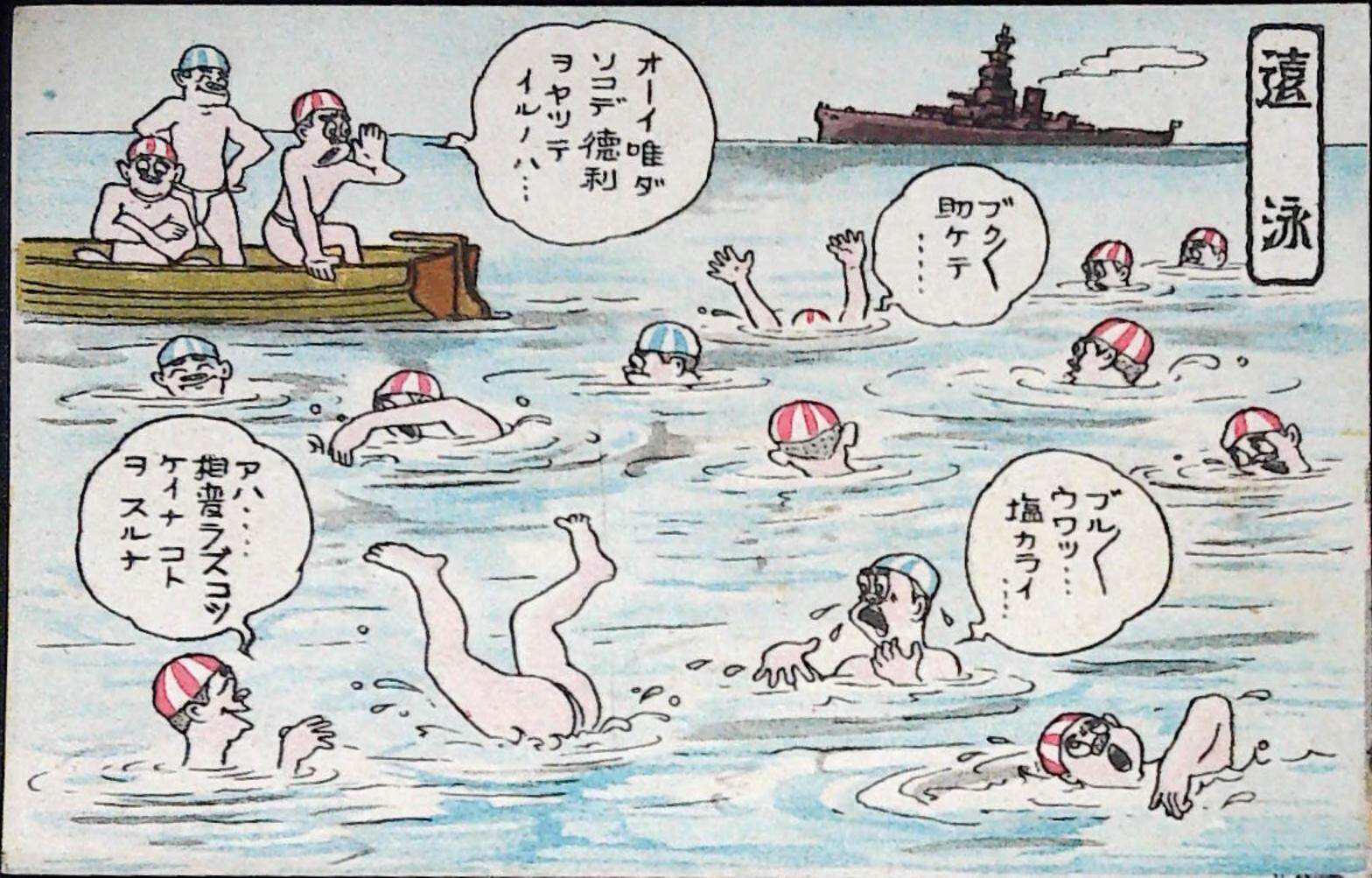 戦前 海軍 漫画 絵葉書 遠泳 絵葉書