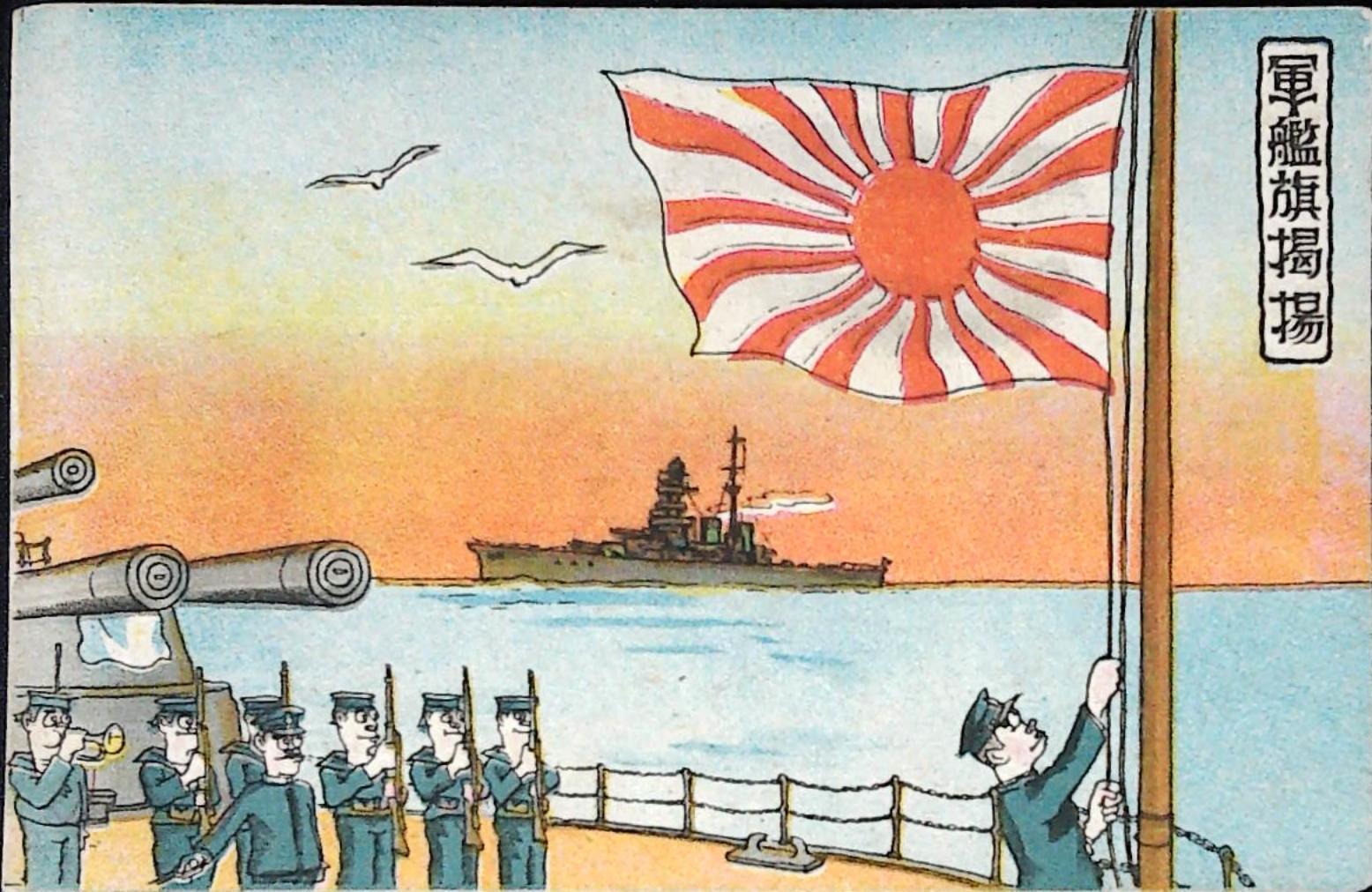 戦前 海軍 漫画 絵葉書 軍艦旗掲揚