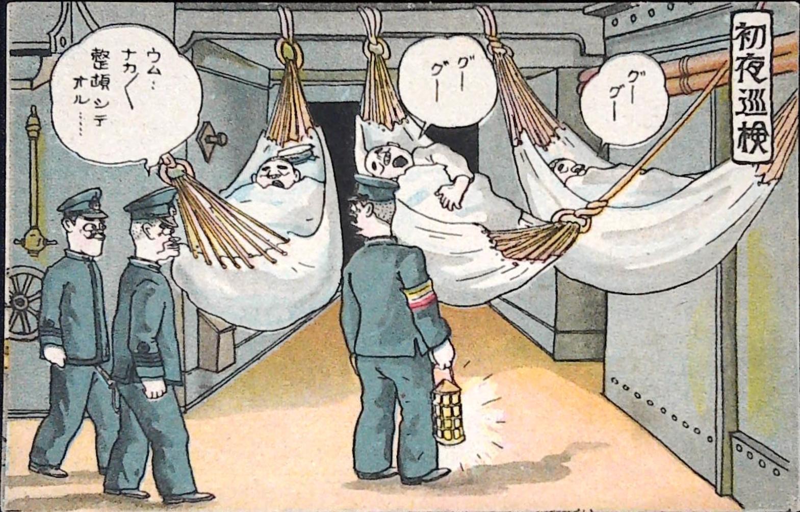 戦前 海軍 漫画 絵葉書 初夜巡検