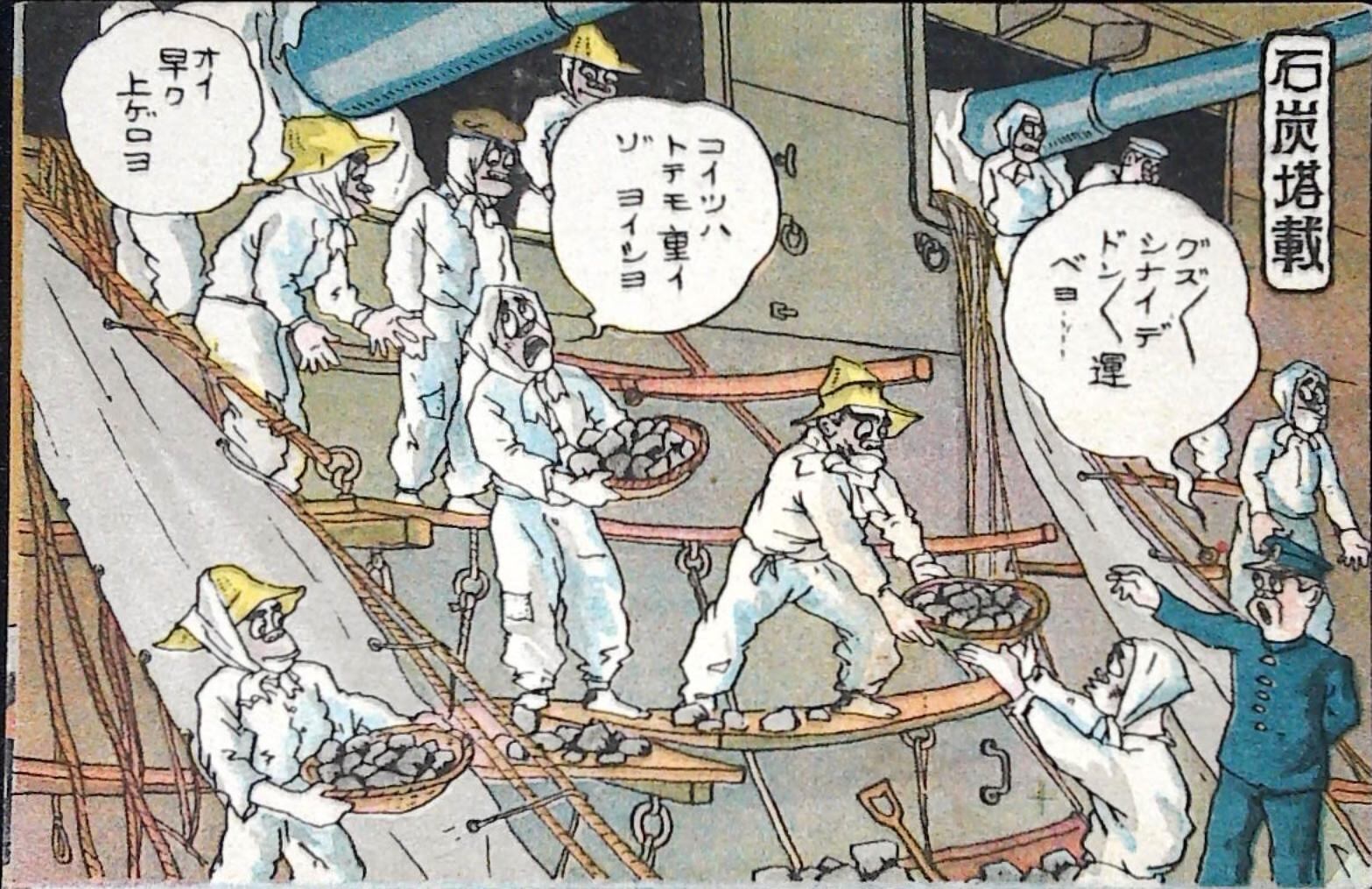 戦前 海軍 漫画 絵葉書 石炭搭載
