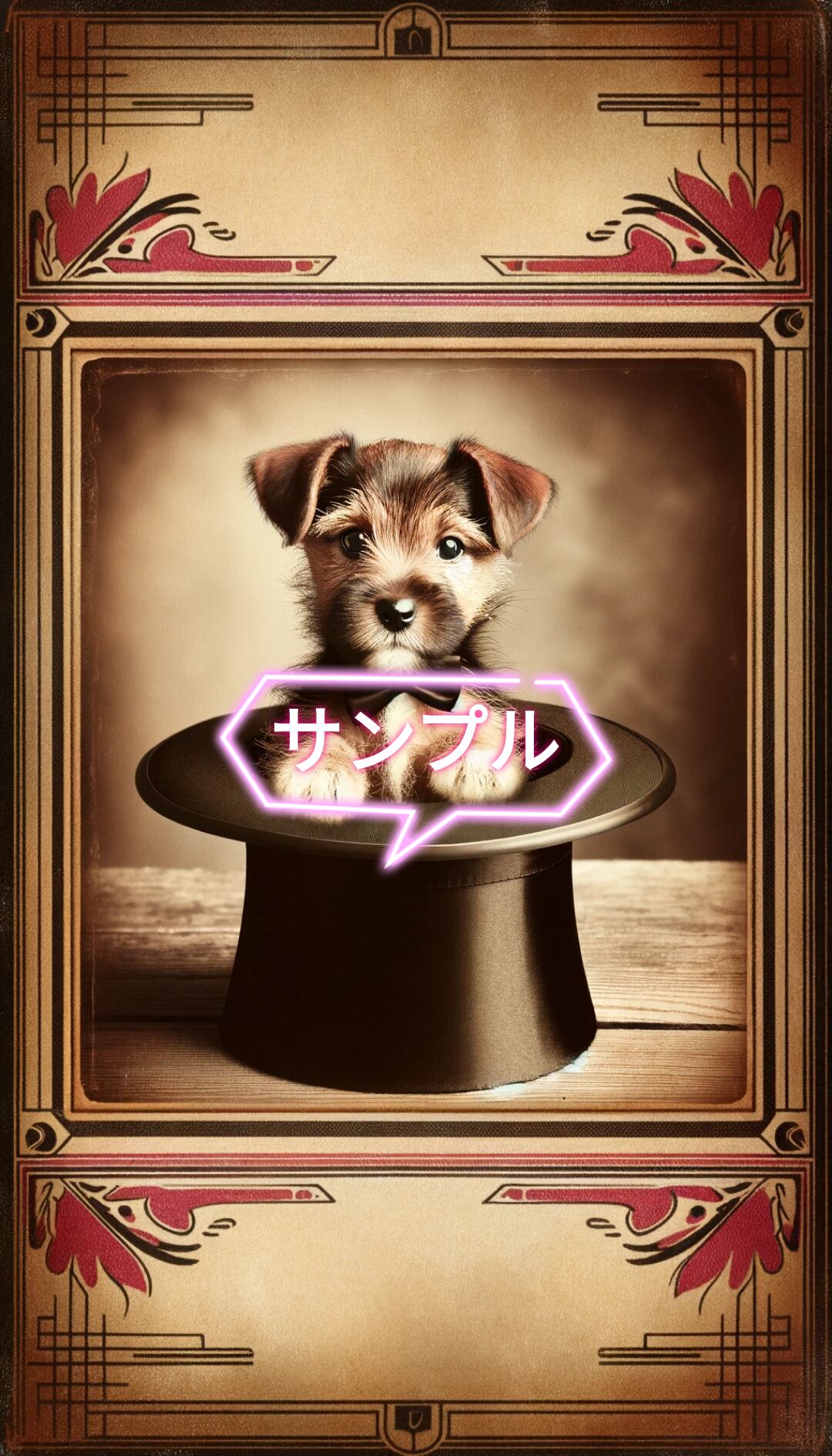 アンティーク風 ハットに入ったワンちゃん1